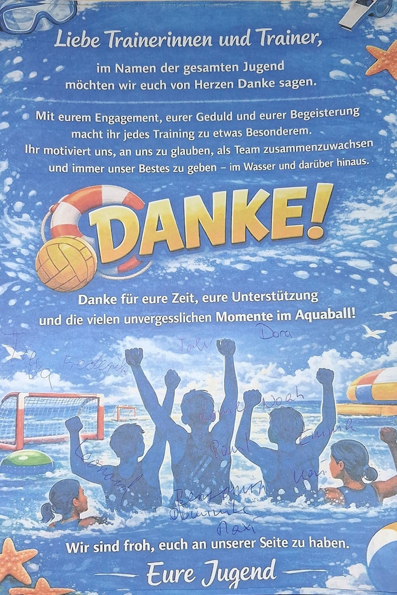 Für alle Freunde von Kontinuität gibt es dabei gute Nachrichten, denn Überraschungen blieben aus. Peter Demmelmayr wurde erneut als Abteilungsleiter bestätigt und darf somit weiterhin die Geschicke der Abteilung lenken – offenbar zur Zufriedenheit der Versammlung, denn Gegenkandidaten blieben aus. Auch Ingmar Guse bleibt als stellvertretender Abteilungsleiter im Amt und sorgt weiterhin dafür, dass Peter nicht alle Entscheidungen alleine treffen muss. Die Finanzen bleiben ebenfalls in bewährten Händen: Henning Knebel kümmert sich weiterhin als Kassier darum, dass Einnahmen und Ausgaben halbwegs im Gleichgewicht bleiben und die Abteilung nicht plötzlich nur noch mit Luftballons statt Aquabällen spielen muss. Beim Thema Öffentlichkeitsarbeit wurde es fast schon luxuriös effizient, denn Pressesprecher bleibt ebenfalls Ingmar Guse – der damit gleich zwei Hüte aufhat und vermutlich nur noch überlegen muss, welchen er bei welcher Gelegenheit aufsetzt. Markus Riedl bleibt derweil der Herr der Dinge und kümmert sich weiterhin als Materialwart darum, dass beim TrainingLuft in den Bällen ist.